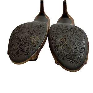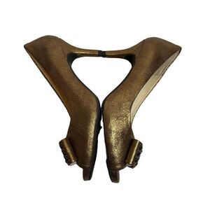 Nurture new without tags metallic bronze copper leather open toe pumps with studded bows size 8. Cushion insoles. Soft leather uppers. Heel height 3”.