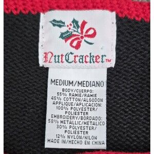 The NutCracker Vintage Ugly Christmas Sweater (Women's Size Medium) is a festive and vintage piece perfect for the holiday season. Made from a blend of polyester this sweater features a Christmas Holiday theme with decorations such as fringe, buttons, and embroidered designs. Also features shoulder pads