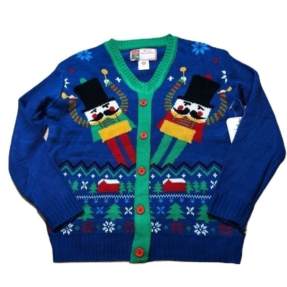 Nutcracker Cardigan NEW Medium V-neck Christmas Button Down Sweater Blue