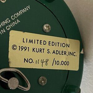 The Kurt Adler Nutcracker is a unique and charming collectible featuring Santa Claus A Drum For Tommy. This vintage piece is made of wood with multicolor detailing. This Nutcracker brings a nostalgic touch to any holiday decor, perfect for adult collectors who appreciate its original design and vintage appeal. Please note that this item is a limited edition piece. Music does not work, small hole on back noted in pictures.