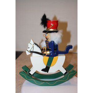 Experience the holiday magic with the 12" Nutcracker Soldier on Rocking Horse. This stunning figurine, without any brand tag, captures the spirit of Christmas, making it a perfect addition to your festive decor.