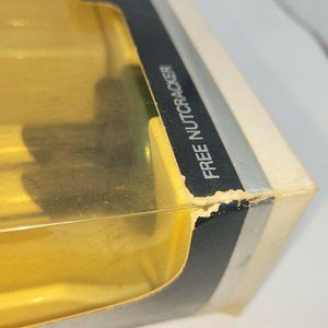 This gift box does not include the cologne that originally came with it. Just the Nutcracker figure. Hat is loose. It can be glued to permanently attach to figure if desired. Original packaging has damage.