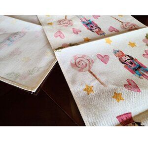 Fun Nutcracker Design Christmas Table Runner with pink accents