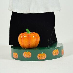 nutcracker figurine, pilgrim decor, thanksgiving decoration, holiday collectible, wooden figurine, nutcracker village, seasonal decor, harvest theme, cornucopia figure, black and white, autumn display, pumpkin accessory, handcrafted decor, fall figurine