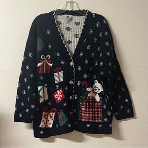 Nutcracker Womens Ugly Christmas Sweater Bear Blue Cardigan Size Large Holiday. Gently worn with minor wear as shown in photos.