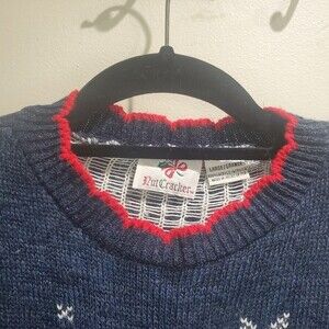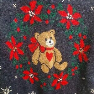 Nutcracker teddybear poinsettias wreath knitted vintage 90s Christmas sweater lg