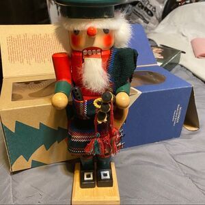 Nutcracker Village 1994 Handcrafted Scotsman Bagpipes Nutcracker RARE Vintage. Traditional Scottish Nutcracker Wearing Plaid Kilt, Green Hat and Holding Bagpipes | Festive Collectable Christmas Decor | Perfect for Shelves and Tables | 100% Wood | 15” Tall, This traditional Scottish nutcracker is sure to bring Christmas cheer wherever it is. It features a nutcracker dressed in a red and gold shirt, with a hat and kilt and holding a set of bagpipes