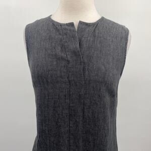 Nuthatch Linen Mini Dress Sleeveless Snap Neckline Shift A Line Gray Womens M
