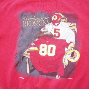 The Nutmeg Mills Vintage 1994 Washington Redskins Commanders Sweatshirt is a nostalgic piece of NFL memorabilia, capturing the spirit of a bygone era. This vibrant red sweatshirt features a bold, graphic print showcasing iconic Redskins imagery, including a player's jersey with the numbers "80" and "5," along with the team's logo. The "Washington Redskins" text is prominently displayed, adding to the vintage appeal. Crafted by Nutmeg Mills, a renowned name in vintage sports apparel, this sweatshirt boasts a comfortable, well-worn feel, indicative of its age. The classic crew neck and ribbed cuffs and hem provide a timeless silhouette. Perfect for die-hard Redskins/Commanders fans, collectors of vintage sportswear, or anyone seeking a piece of authentic 90s nostalgia, this sweatshirt is a true testament to the team's rich history.