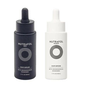 Elevate your hair care with the Nutrafol Hair Serum Duo. These black and white serums are crafted to enhance hair thickness and reduce breakage, delivering essential nutrients to your scalp.