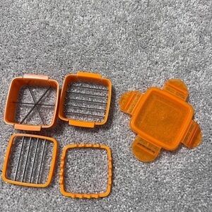 Stop chopping vegetables one slice at a time with Nutri Chopper, the incredible, compact, handheld kitchen slicer that cuts your vegetables with just one snap. The engineers at Nutri Chopper have combined five different interchangeable slicing options into one Super slicer. So now you can shop thick slices, thin slices, cubes, and more. Nutri Chopper is ten times faster than your old knives, easier to use, and dishwasher safe. The quick-lock function lets you store Nutri Chopper in a drawer, safe and secure