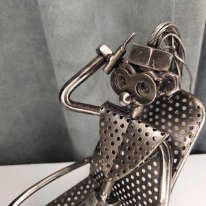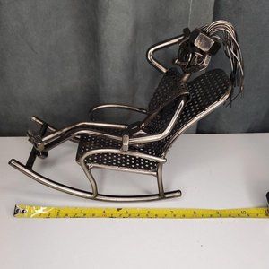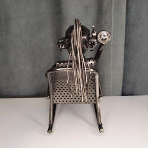 No badges to identify (looks like they fell off or came off at some point), but after researching it appears to be Hinz and Kunst or Steelman24--or something very similar in that style. Very cool unique sculpture with lots of detail! Measures 10" x 4" x 8" Let me know if you have any questions. Shipped fast from Texas--thanks for looking! Nuts & Bolts Sculpture Woman in Rocking Chair on Phone STEELMAN24 Hinz & Kunst