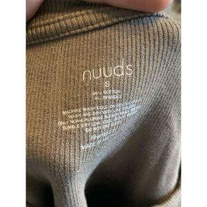 Keywords: Nuuds bodysuit, brown ribbed bodysuit, long sleeve bodysuit, Nuuds size small, neutral basics, minimalist bodysuit, Nuuds top, elevated essentials, Nuuds ribbed long sleeve, pre-loved Nuuds