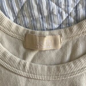 Bone White, Size Large with approximate measurements laying flat of 17" chest and 23" length. in gently used, excellent condition with wash wear only. from a smoke-free, dog friendly home,