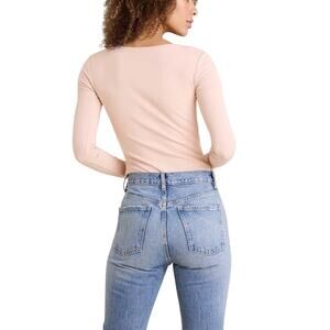 Nuuds Hook & Eye Bodysuit in Pink Ribbon Long Sleeve Size Medium