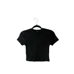 Nuuds Ribbed Crewneck Baby Tee in black.