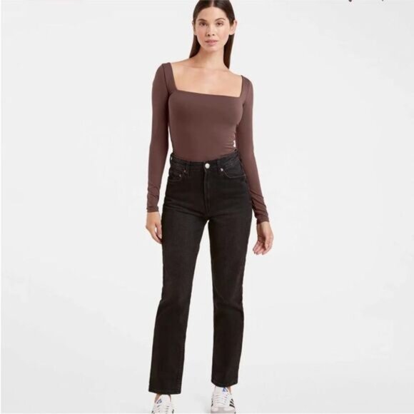 Nuuds Square Neck Long Sleeve Bodysuit Brown sz XL