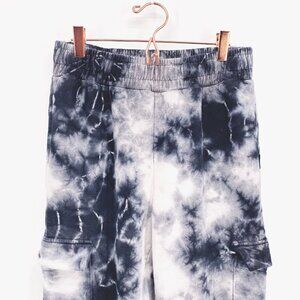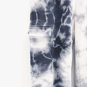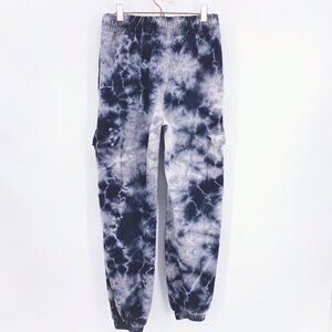 Tie dye pattern jogger sweatpants with cargo style pockets. Elasticized cuffs and waistband. 100% organic cotton. Size medium