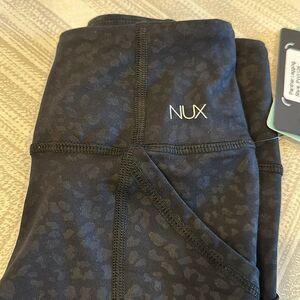 Nux Black on Black Panther Full Length Leggings. Pockets. 27” inseam. NWT. Size XS.