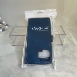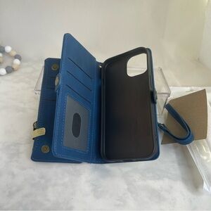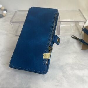 Nvollnoe For IPhone 15 Wallet Case With Card Holder And Zipper Pocket Wrist Blue
