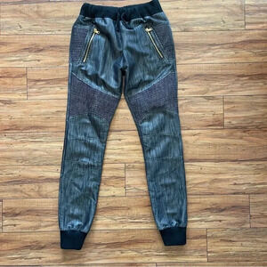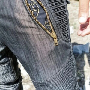 – Moto style joggers with biker pleating detailing pocket trim and knees