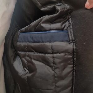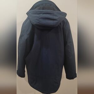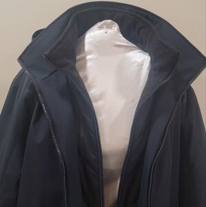 New without the Tag - Ladies Navy Weatherproof hooded coat. (sz - med). The coat has a quilted lining. There is a pocket on the inside for your cellphone. There is a double zipper - one for the lining and one for the coat. The hood is removable. Please see all pictures.