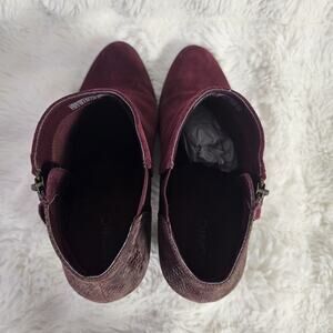 NwoT Vionic Anne Ankle Boots Suede Comfort Snakeskin Embossed Women Sz 12 Maroon