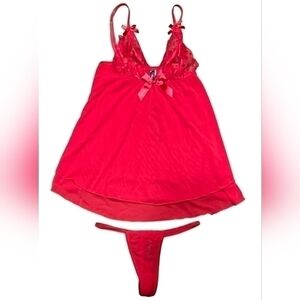 Nwot 2 Piece Women's Dreamgirl Stretch Lace Babydoll With Thong In Red ♥️♥️Small