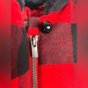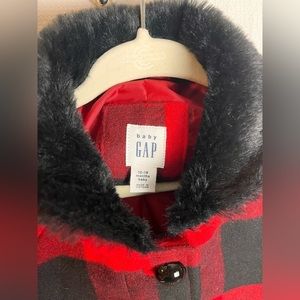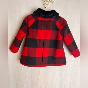 Nwot Baby Gap red and black plaid coat with faux fur collar