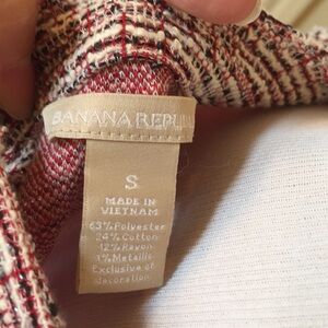 This is so pretty. Very light weight fabric. Tweed design. Black button in back with peep hole design. Black piping design around collar. Length 24” long meant to be a bit looser fit. Chest 34 1/2”