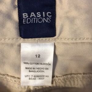 NWOT Basic Editions Shorts. Size 12. Cream color. Approximate flat lay measurements: 17 inches. Inseam 6.5 inches. NonSmoking home