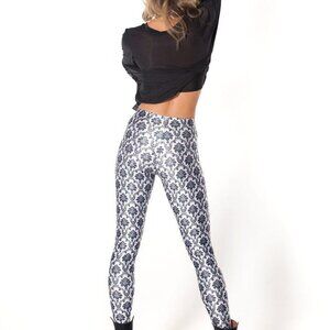 Nwot Blackmilk metallic silver wallpaper retro pattern Sm leggings