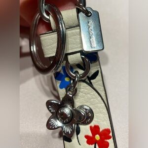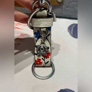 Nwot Coach Floral Printed Pebbled Leather Key Fob/ Charm Dust Bag Included