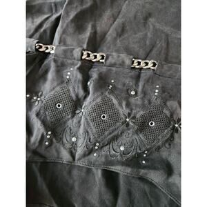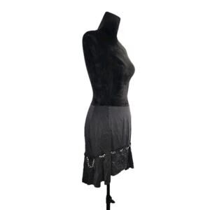 Nwot Coach Ruffled Hem 100% Silk Black Embroidered Mini Skirt With Chain Size 4