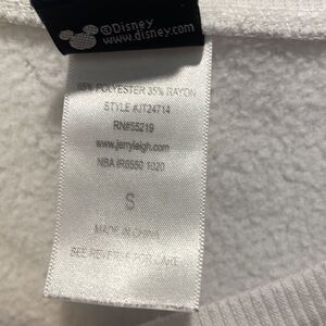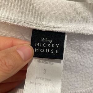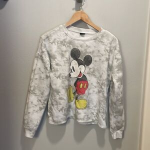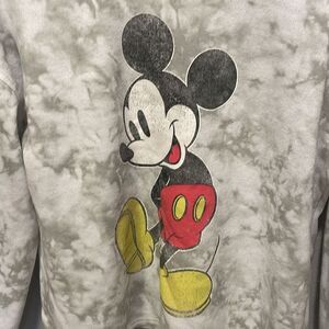 NWOT Disney Mickey Mouse woman’s tie die in white and grey sweatshirt. It’s a woman’s size Small. It’s super cute and in good condition.
