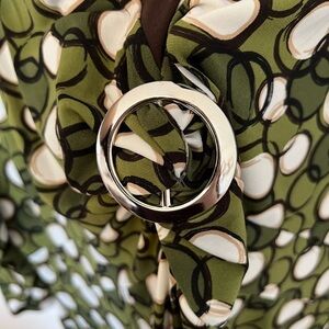 NWOT, never worn. East 5th women’s plus casual v-neck top with built-in modesty camisole. Beautiful bright, bold graphic geometric circle pattern. Silver accent ring at the gathered front. Great for casual outings but can be easily dressed up for a business casual workspace.