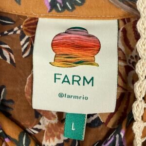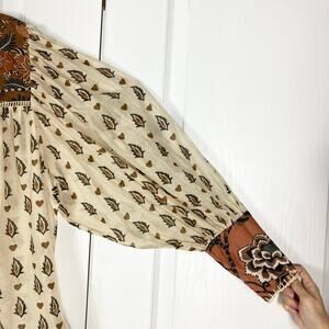 Nwot FARM RIO Top L Cream Brown Floral Pearly-Button Crochet Puff-Balloon-Sleeve