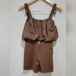 NWOT FREE PEOPLE Movement Women's Bubble Trouble Onesie Black Walnut Size XS