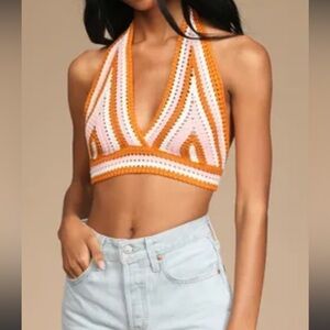 Nwot Groovy Vibes Cream Multi Knit Halter Cropped Sweater Tank on Lulu website