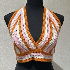 🟢Nwot Groovy Vibes Cream Multi Knit Halter Cropped Sweater Tank