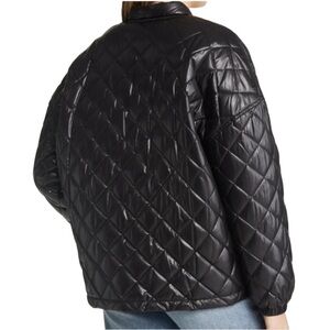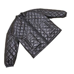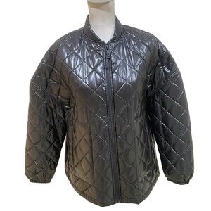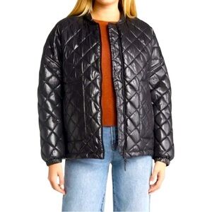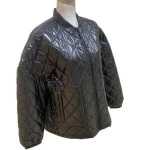 New without tags halogen puffer quilted zip up black jacket from Bloomingdales. Stand up collar. Front pockets. Lightweight. Oversized style. Made of 100% polyester. New!