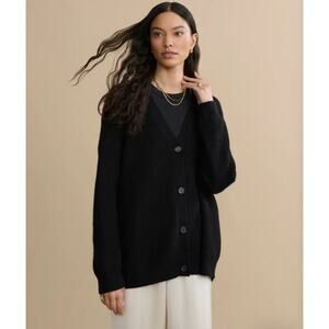 Nwot JENNI KAYNE Cardigan S Cashmere Grey”’Cocoon”Ribbed V Long-Sleeve Button-Up