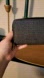 Color is charcoal gray with a denim type pattern and gold tone hardware