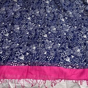 Nwot Lilly Pulitzer for target fringe gosh hot pink scarf. Excellent condition smoke free home. Super cute tropical navy blue and white. Scarf. 41” wide x 72” long. Never worn. 2.5” fringe each side 20 th anniversary Collection Questions? Leave a comment below!