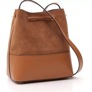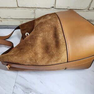 M82 New Michael Kors Cary Brown Suede & Leather Bucket Bag Purse