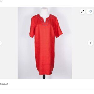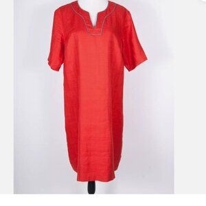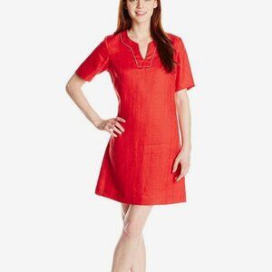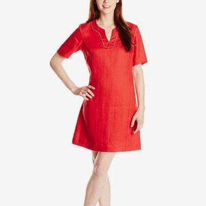 Nwot Pendleton Lora Dress 100% Linen V-neck A line Red Short Sleeve knee leng 10
