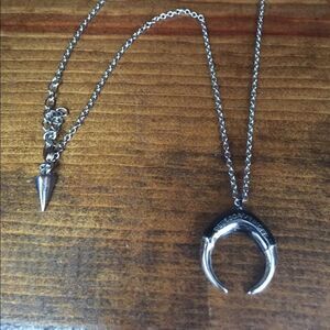 Nwot Rebecca Minkoff signed double horn pendant necklace black silver
