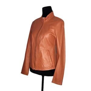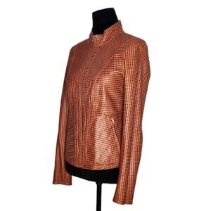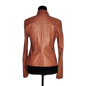 Nwot Rossini By Baggio Reversible Orange/ Plaid Napa Leather Jacket Size M