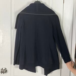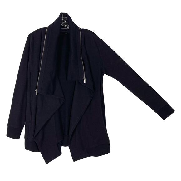 Nwot SABA Jacket Cardigan XS Black Open 2-Zip-Collar Drape Pocket Cotton Long-Sl