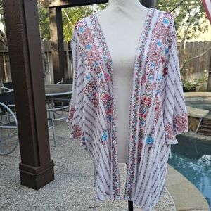 Savanna Jane Multicolor Boho Aztec Floral Embroidered Open Front Kimono